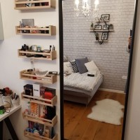 אז רכשנו מדפי תבלינים של מטבח שבהם היא סידרה את כל האיפור שלה – יצא מדליק לגמרי.